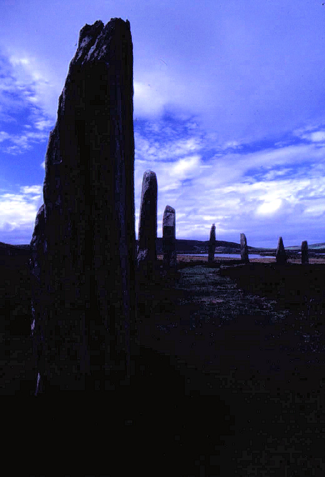 La mia destinazione, pero', non era semplicemente la Scozia: volevo andare alle isole Orcadi, immediatamente a nord della Scozia. Prendo il Traghetto a Scrabster dopo aver guidato per 2.350 km, e finalmente sbarco a Stromness, nelle Orcadi. Piene di circoli di pietre preistorici, come questo, il Ring of Brodgar, e le standing stones of Stenness.