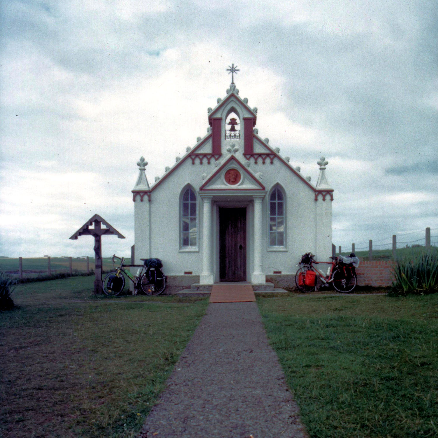 Una cappella costruita durante la seconda guerra mondiale dai prigionieri di guerra italiani, che venivano impiegati nella costruzione delle Churchill Barriers (massicciate difensive per evitare ulteriori devastanti incursioni della Kriegsmarine tedesca nella base della Royal Navy a Scapa Flow). Nei ritagli di tempo, i nostri connazionali costruirono questa cappella con baracche militari Nissen e materiale di recupero. Le biciclette danno un'idea delle minuscole dimensioni della chiesetta.