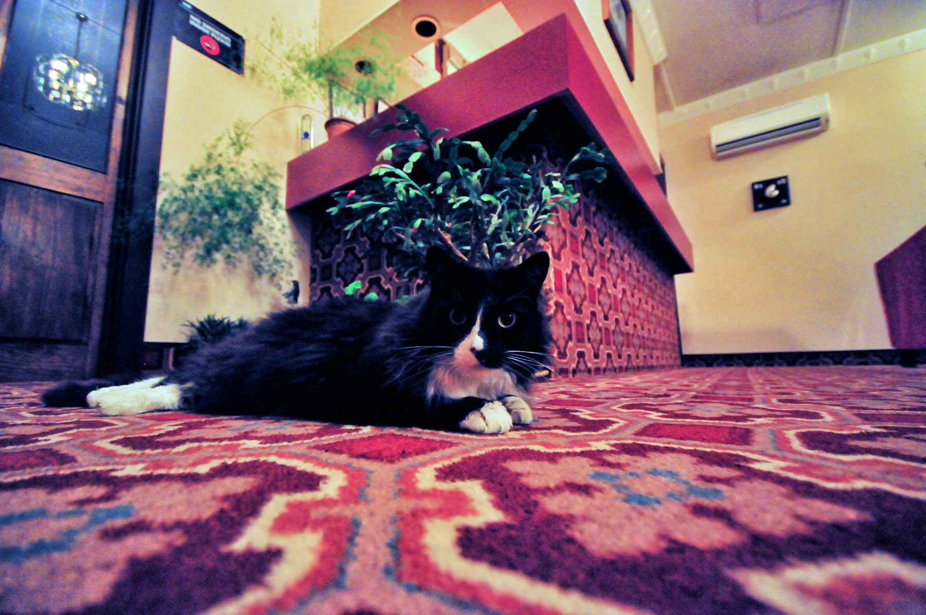Il gatto padrone di casa dell'albergo in cui abbiamo dormito a Bluff.