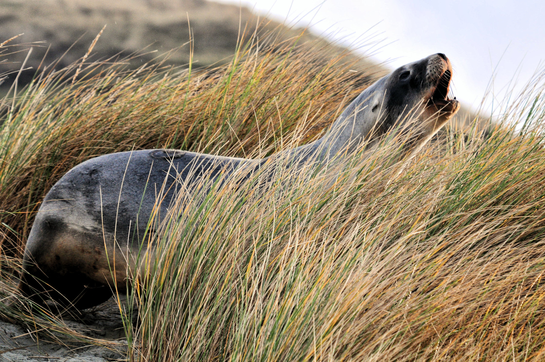 Cugino (o fratello?) più grande, più feroce e meno noto delle foche, il pakake (leone di mare) è un animale sul quale siamo stati messi in guardia. Per lenti e goffi che sembrino sulla terraferma, sono sorprendentemente rapidi, quando si aggirano tra le dune sabbiose di fronte al mare.