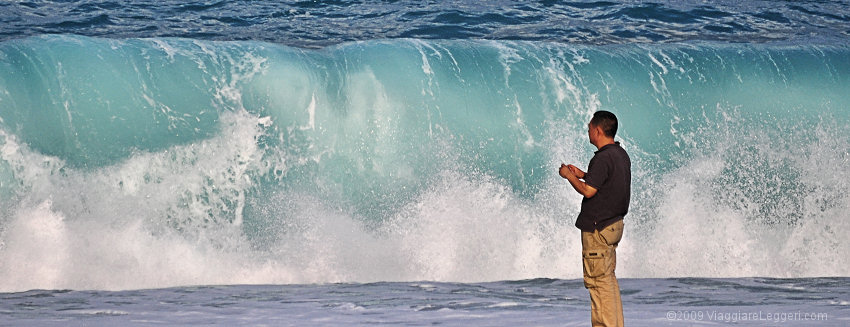 "Sara' meglio scegliere un diaframma aperto, in modo che le onde in primo piano risaltino su di uno sfondo indistinto, oppure scegliere un diaframma molto chiuso e avere tutto a fuoco? Se scelgo il diaframma chiuso mi ritrovo con un tempo lento, e finisce che faccio una foto mossa, a meno di non usare una sensibilita' alta che rovinera' poi i dettagli dell'immagine. Ah, che dilemma!"