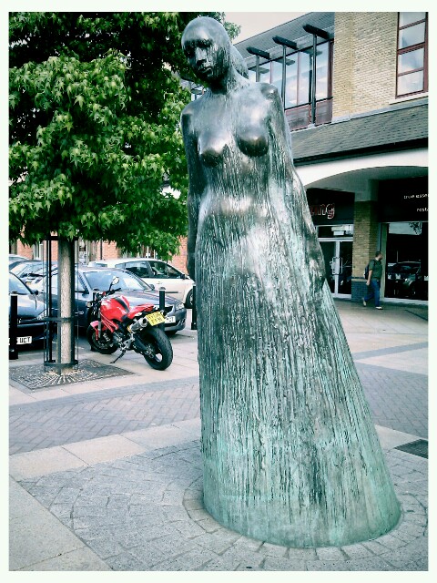 Staines, Two Rivers Parking. In primo piano una scultura che raffigura i due fiumi di Staines che si uniscono ... a formare l'omonimo parcheggio, suppongo. Sullo sfondo una Ducati. Preferisco la seconda, grazie