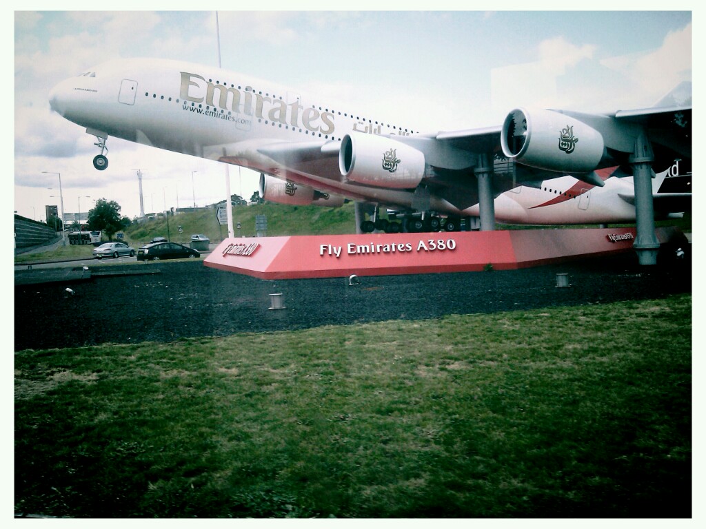 Heathrow, rotonda all'ingresso dei terminali 1,2 e 3. Un modello in scala ridotta dell'Airbus A380 funge da "gate guardian".