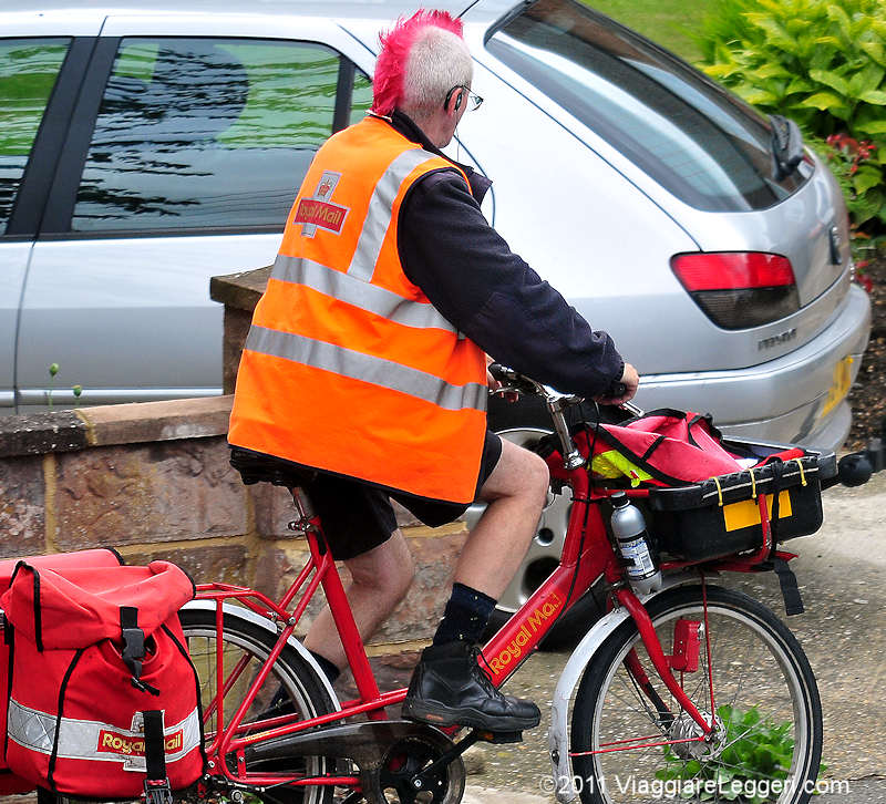 Ieri, nelle dieci piccole ragioni per vivere in Inghilterra, avevo scritto che "(n)on devi vestirti elegante per andare a fare la spesa". Dopo aver visto la foto di questo postino della Royal Mail con cresta fucsia, penso concorderete che in Inghilterra puoi conciarti come ti pare, basta che tu faccia bene il tuo lavoro.