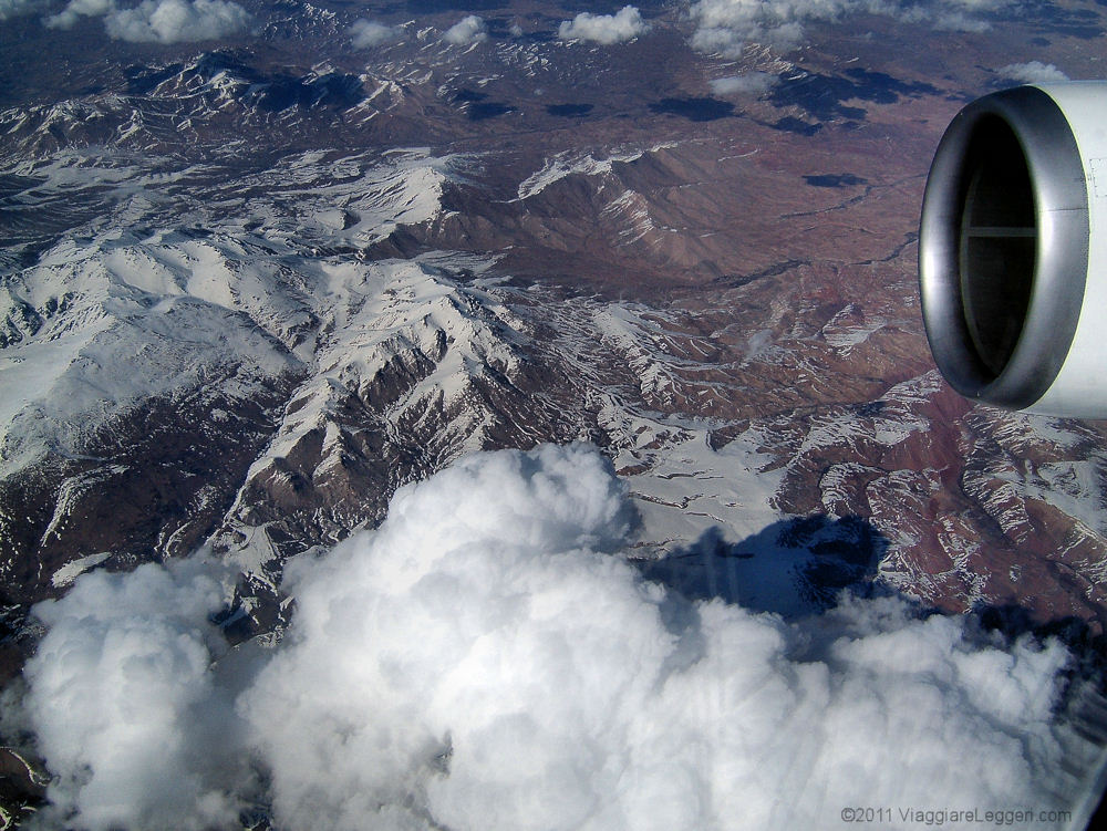 17/10/2011 | Claudio_VL | 0 commentiDi solito, quando sono in aereo, cerco di dormire. Prima leggo qualcosa, poi scrivo note per questo sito sullo smartphone, poi guardo un film e infine mi addormento. Questo nei voli intercontinentali. A volte, pero', ignorare abitudini e sonnolenza puo' essere proficuo. Guardando fuori dal finestrino si vedono spesso cose interessanti, anche volando a ottocento chilometri all'ora a dieci chilometri da terra. I fiumi indiani. Le isole malesi. Il golfo di Napoli di notte. Le coste delle isole greche. Le Alpi. Le montagne dell'Asia centrale, come in questa foto.