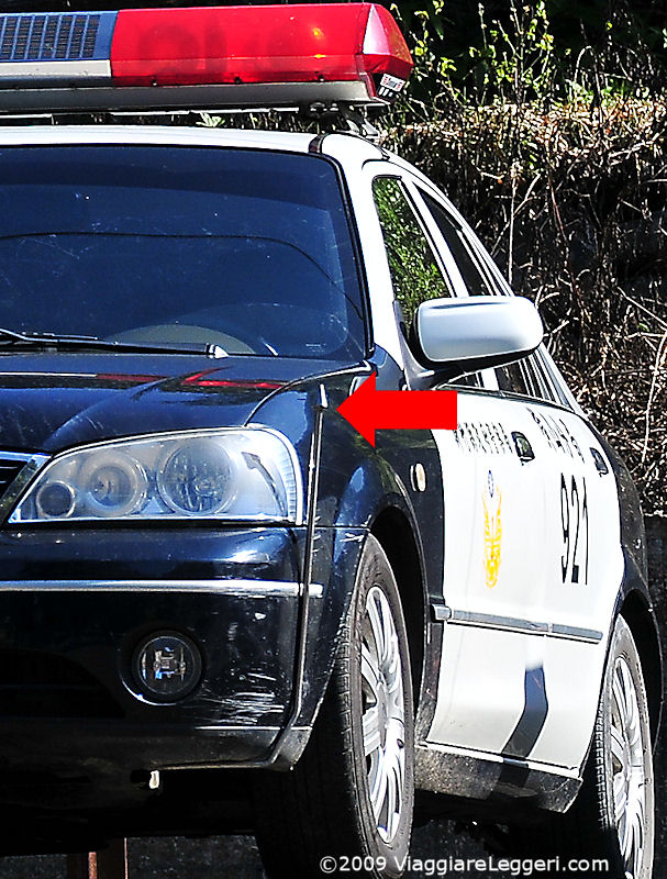 22/04/2013 | Claudio_VL | 1 commentiA Taiwan si vive bene, la polizia sembra funzionare come quella inglese (nessun bisogno di usare armi da fuoco, i criminali si arrendono, come i loro colleghi inglesi, quando un poliziotto grida "STOP! O grido di nuovo STOP!"). Pero'... le auto della polizia hanno una dettaglio aggressivo, molto aggressivo. Questi speroni, o pungiglioni, di fianco al paraurti anteriore. Saranno degli indicatori dell'ingombro della vettura, o serviranno per "pungere" a morte i criminali?