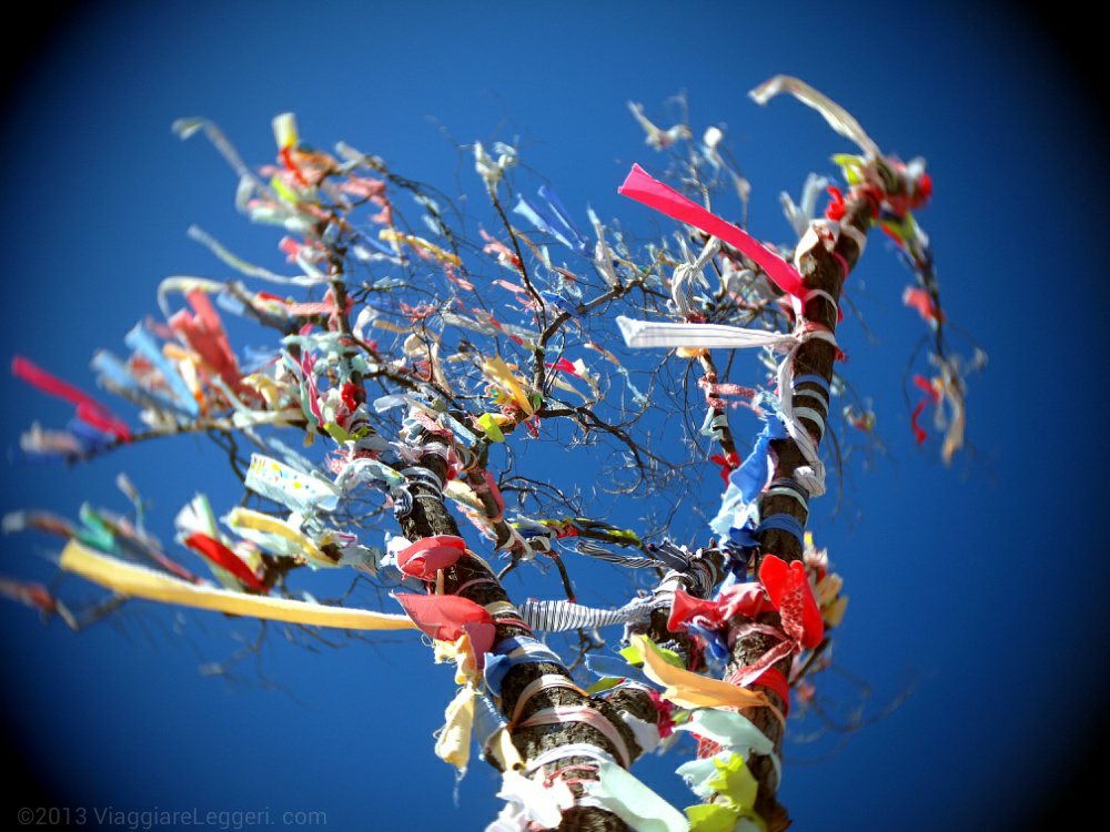 Sembra un'immagine del Bhutan o del Nepal, invece e' l'albero della cuccagna di Monte San Vito, provincia di Ancona, per la manifestazione Cantamaggio. E queste, evidentemente, non sono bandiere di preghiera tibetane, ma sono comunque belle, mi pare.