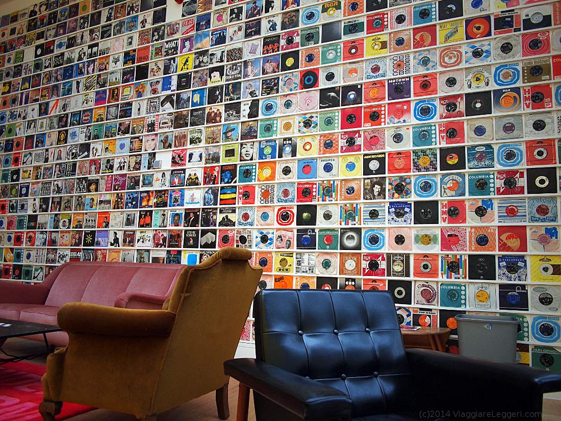 16/04/2014 | Claudio_VL | 1 commentiRicordate la Old Vinyl Factory, la fabbrica dei dischi in vinile a Hayes, vicino a Heathrow, quella con il murale? Questo e' un angolo della zona mensa, lontano dai tavoli su cui si consumano panini, insalate e conversazioni: ci sono poltrone, divani, tavolini, una tv con delle consolle per videogiochi (fuori campo), ma soprattutto c'e' il muro dei 45 giri. Nella Old Vinyl Factory, quando era in attivita' e non ancora "old", venivano stampati i dischi della EMI con cui tanti di noi, non piu' ventenni, sono cresciuti: Sade, Lionel Richie, Duran Duran, Roxy Music, David Bowie, Blondie, Sex Pistols, Harry Belafonte, Prince, Phil Collins, e tanti altri.