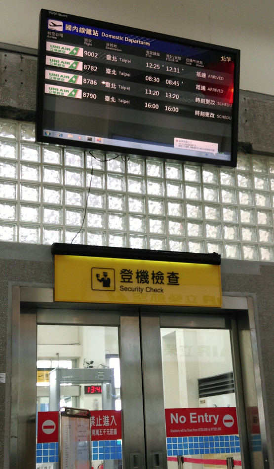 Sono all'aeroporto di Beigan, piccola isola taiwanese nell'arcipelago delle Matsu; fa caldo ed è una giornata umida, non c'è un filo di vento. All'una e venti del pomeriggio avrei dovuto prendere il volo Eva Air 8786 per la capitale, Taipei, ma il volo è in ritardo. All'altoparlante dell'aeroporto annunciano che il ritardo arrivera' probabilmente alle due, e il tabellone dei voli verra' aggiornato solo quando saranno certi dell'entita' del ritardo. Nel frattempo, all'una e venti, dieci minuti prima che il volo sia in ritardo, Eva Air invita i passeggeri del volo 8786 a visitare il banco del check-in, dove troveranno una bevanda per ristorarsi.