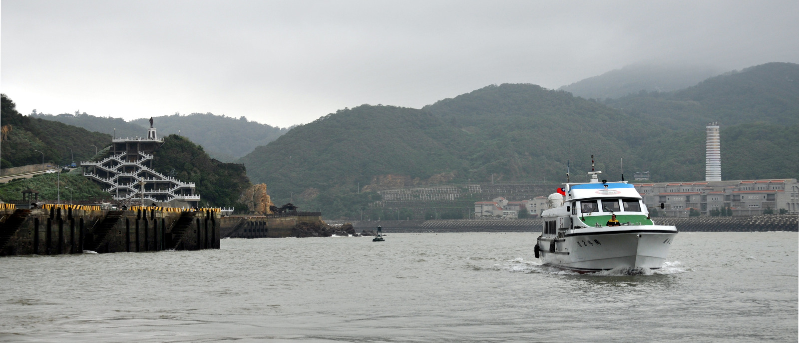 Il battello per Beigan è molto più piccolo del traghetto che da Keelung ci ha portati a Nangan. Siamo seduti nella fila di posti più dietro possibile, abbiamo messo i braccialetti anti-mal di mare, ma comunque le onde si sentono. Per fortuna arriviamo a Beigan in 15 minuti. Il porto è molto più piccolo di quello di Nangan; di primo acchito, l'isola sembra meno sviluppata, e credo sia ancora più vicina alla Cina. (scopriro' poi che Beigan misura 10 chilometri quadrati, ha duemila abitanti, e che per percorrerla da un capo all'altro ci sono da fare circa 10 km.) Bella la strada sul lungomare, non sfigurerebbe in Italia. Noto un occidentale in partenza, il primo visto dal mio arrivo a Taiwan quest’anno.