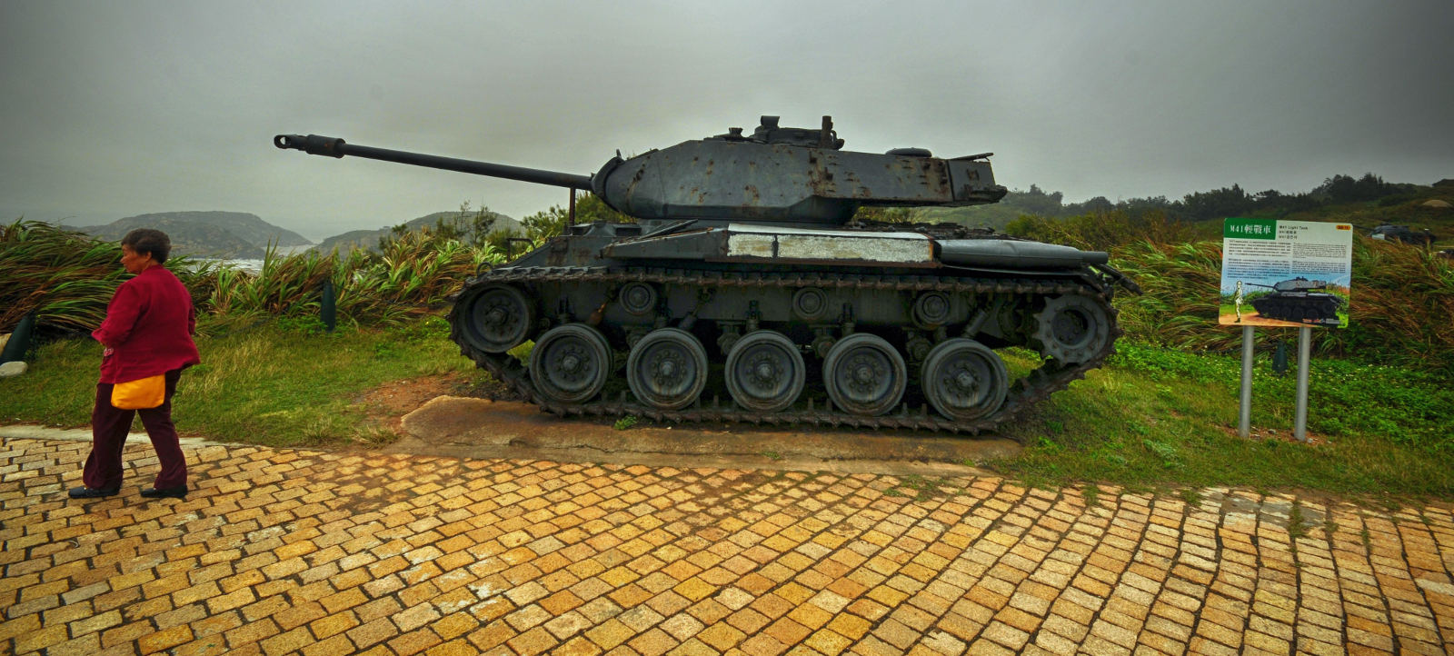 Alla fine del percorso, in cima alla collina dietro Houao, salutiamo il tassista, che "utilizzeremo" altre volte oggi e domani, e ci guardiamo intorno: siamo a Stronghold 08, dove un bunker e vari carri armati (disarmati) sono utilizzati, come dice un pannello espositivo, per "presentare un microcosmo di un campo di battaglia e scene storiche dell'area delle isole Matsu". I carri armati (riconosco un M-41) sono sempre impressionanti, ma quando ci si piazzano davanti cinque-sei ragazzine sorridenti che fanno con le dita il gesto della "V", la scena diventa meno drammatica.