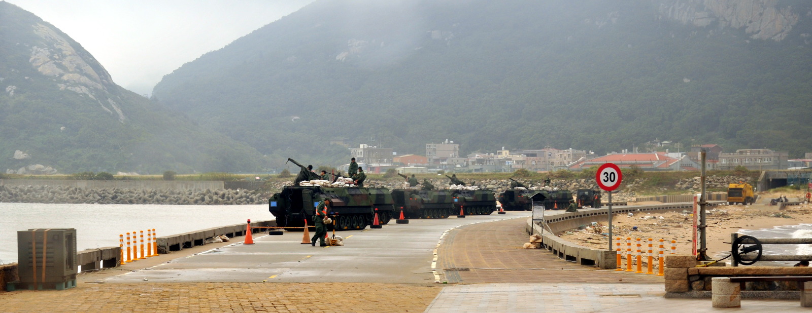Sei e tre quarti, usciamo, il solito tassista ci attende. Ci portera' a Houao passando sul ponte pieno di veicoli militari. A Houao ci sono dozzine di persone sedute alle panchine, residenti locali e turisti che abbiamo gia' incontrato a Nangan e che come noi stanno facendo il giro delle isole Matsu. Alle 19,30 iniziano i fuochi d'artificio... parte un bengala nella baia a sud del ponte, e si vedono proiettili traccianti partire dalla collina dietro Houau (quindi dall'estremita' orientale dell'isola) verso la baia (o oltre), poi silenzio mentre il bengala (per i non addetti: e' un dispositivo illuminante che scende lentamente e, appunto, illumina l'area circostante) continua a scendere, poi proiettili traccianti partono dai cingolati sul ponte. Si ripete varie volte con altri bengala, e alle 19,50 lo "spettacolo" finisce. Scopriro' poi che questa e' solo una prova generale prima delle esercitazioni vere di domani sera, che dureranno piu' a lungo e che non vedro' perche' domani dopo pranzo ripartiamo: torniamo in aereo a Taipei, sull'isola principale di Taiwan, per poi prendere un treno verso Hualien, sulla costa orientale.