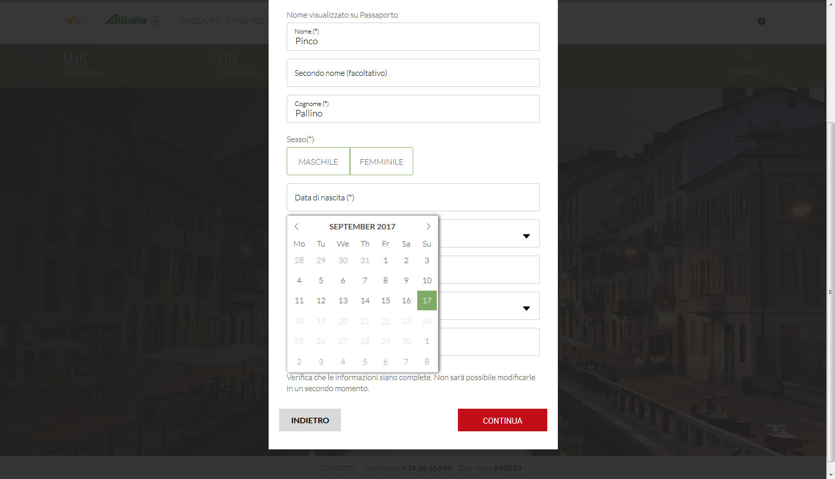 17/09/2017 | Claudio_VL | 0 commentiPoco fa ho concluso il check-in per il mio volo Alitalia di domani. C'è voluto un po' di tempo, anzi parecchio (un'ora) per completare l'operazione, a causa di un paio di scelte di web design che la compagnia aerea ha fatto.