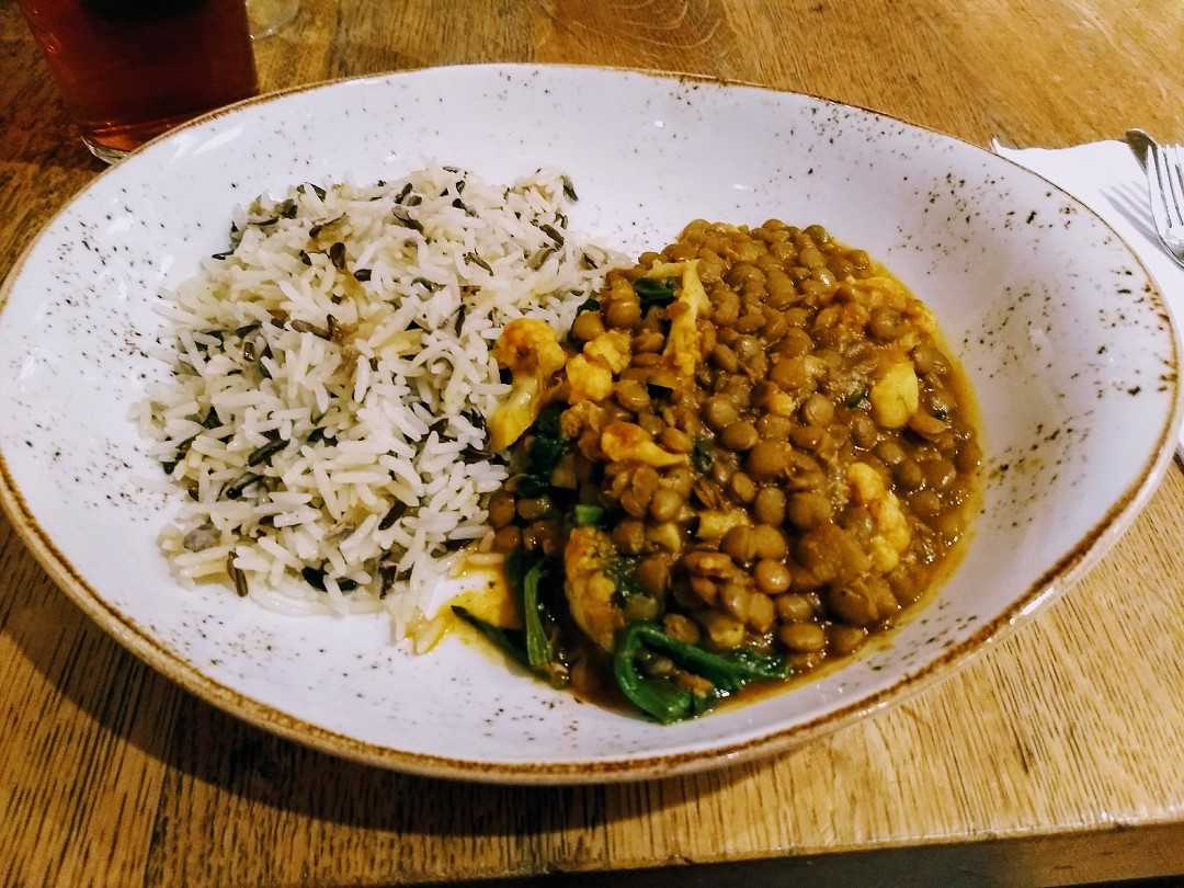 Ho iniziato questo viaggio vegetariano in aeroporto: ho cenato con un piatto di curry con lenticchie, cavolfiore, spinaci e porri. Nove sterline e novantacinque, il curry era saporito, il resto molto meno. Vedremo quanto riuscirò a resistere a mangiare vegetariano...