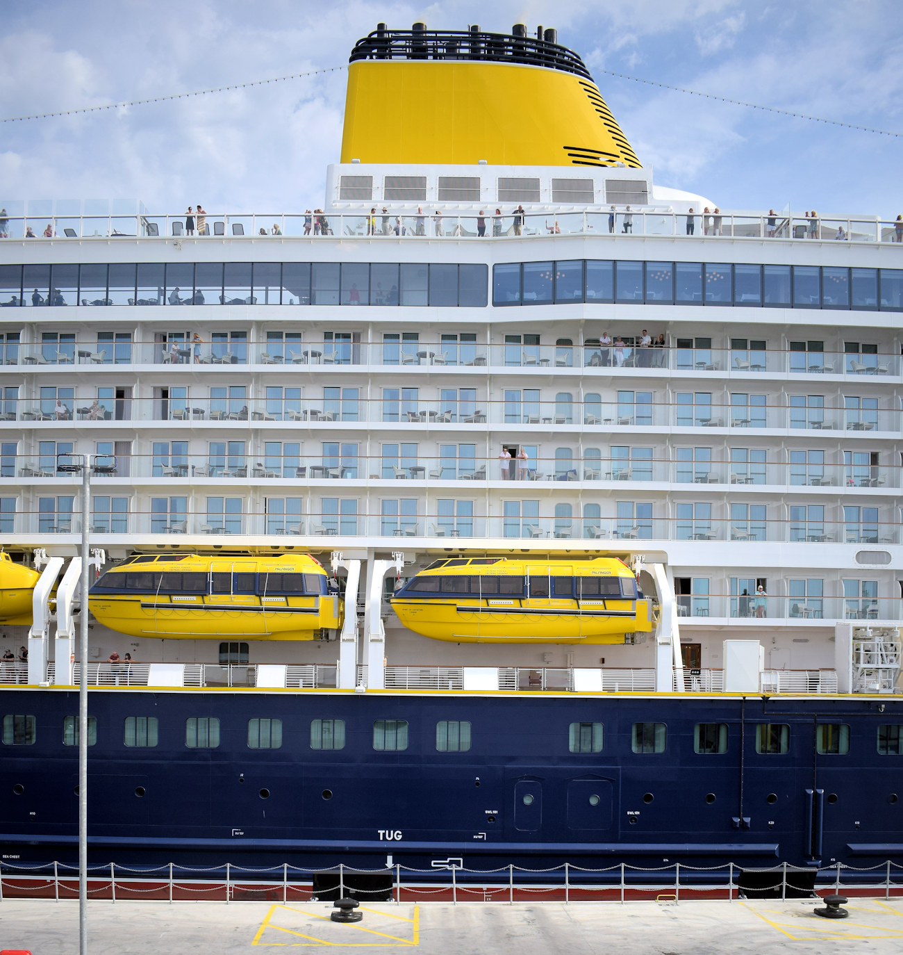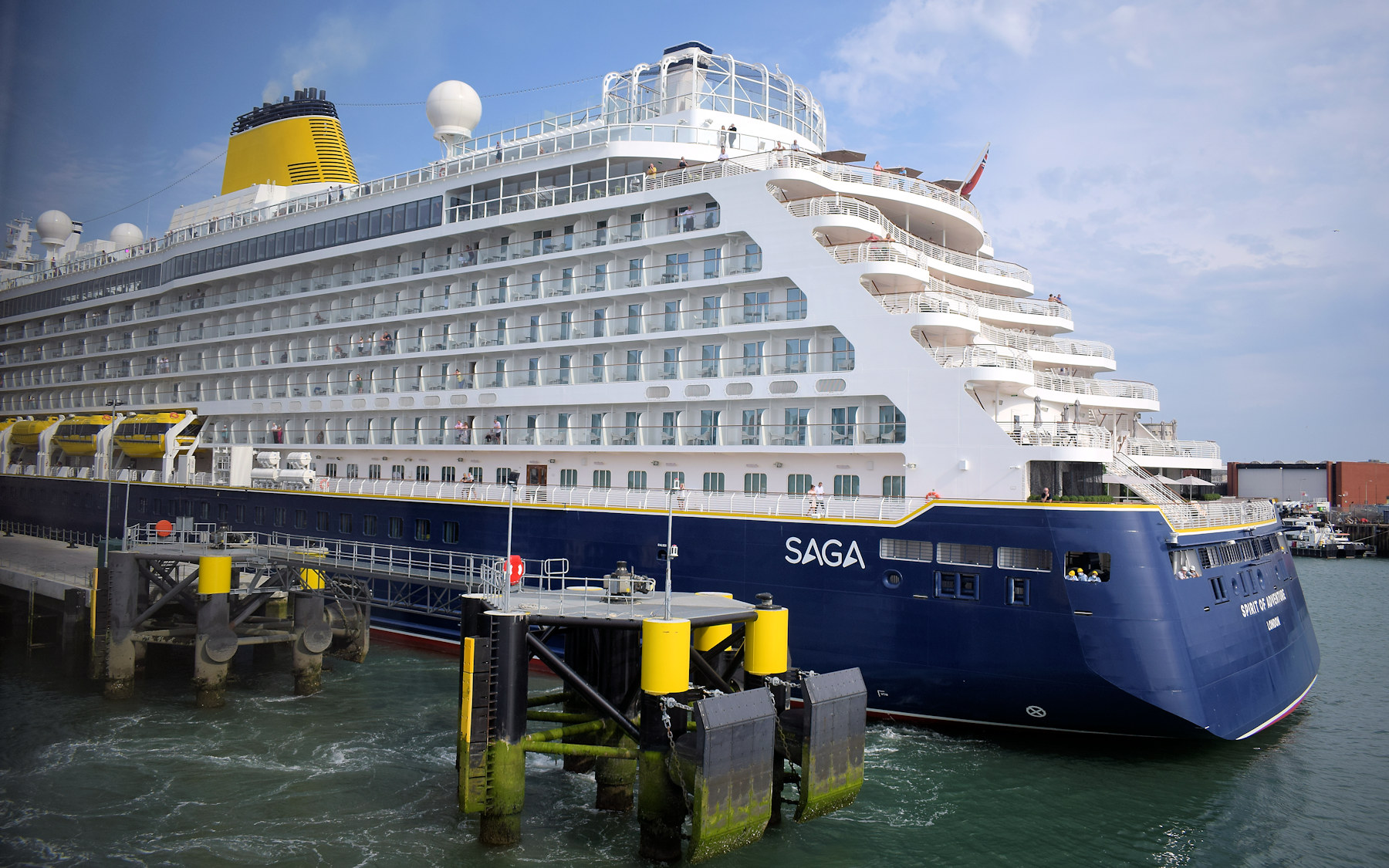 La nave da crociera Spirit of Adventure. 999 passeggeri, 58.199 tonnellate, lunga 236 metri, 540 persone d'equipaggio. Le cacciatorpediniere appena viste hanno un dislocamento (peso) inferiore a 10.000t, giusto per dare l'idea di quanto grande sia una nave da crociera.