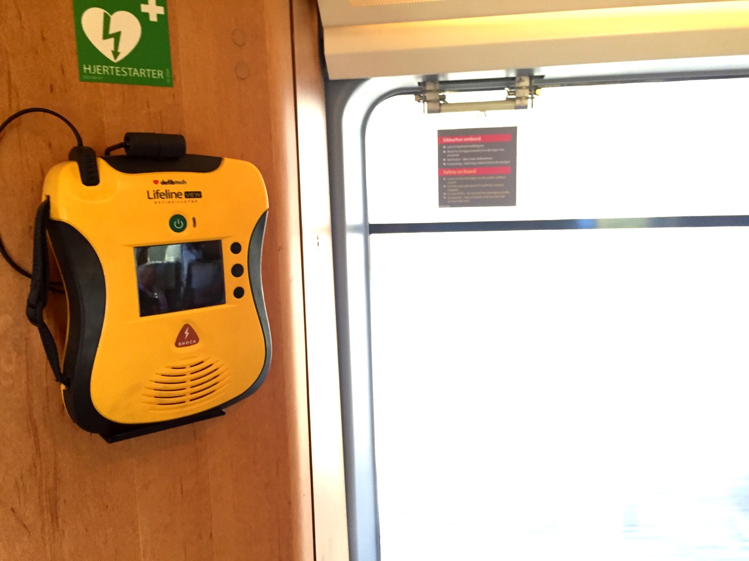 Sono su un treno tra Oslo e Trondheim, alle mie spalle c’è un defibrillatore, il secondo che vedo su questo treno.