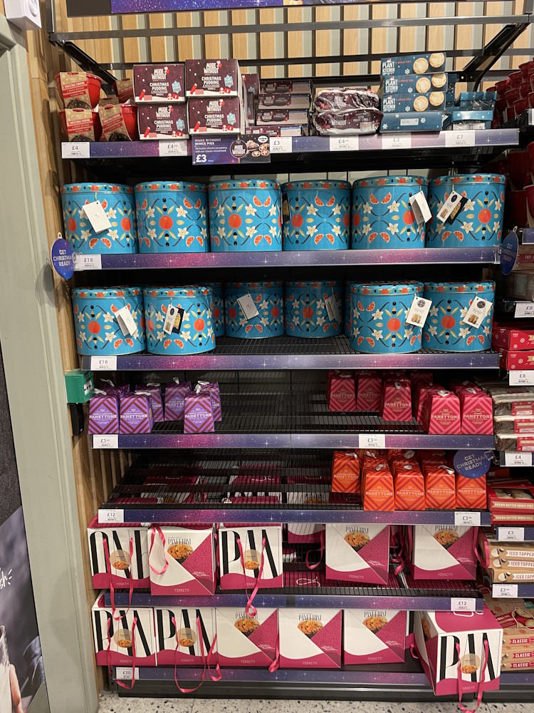 Il misero scaffale dei panettoni di Marks & Spencer, Staines-upon-Thames