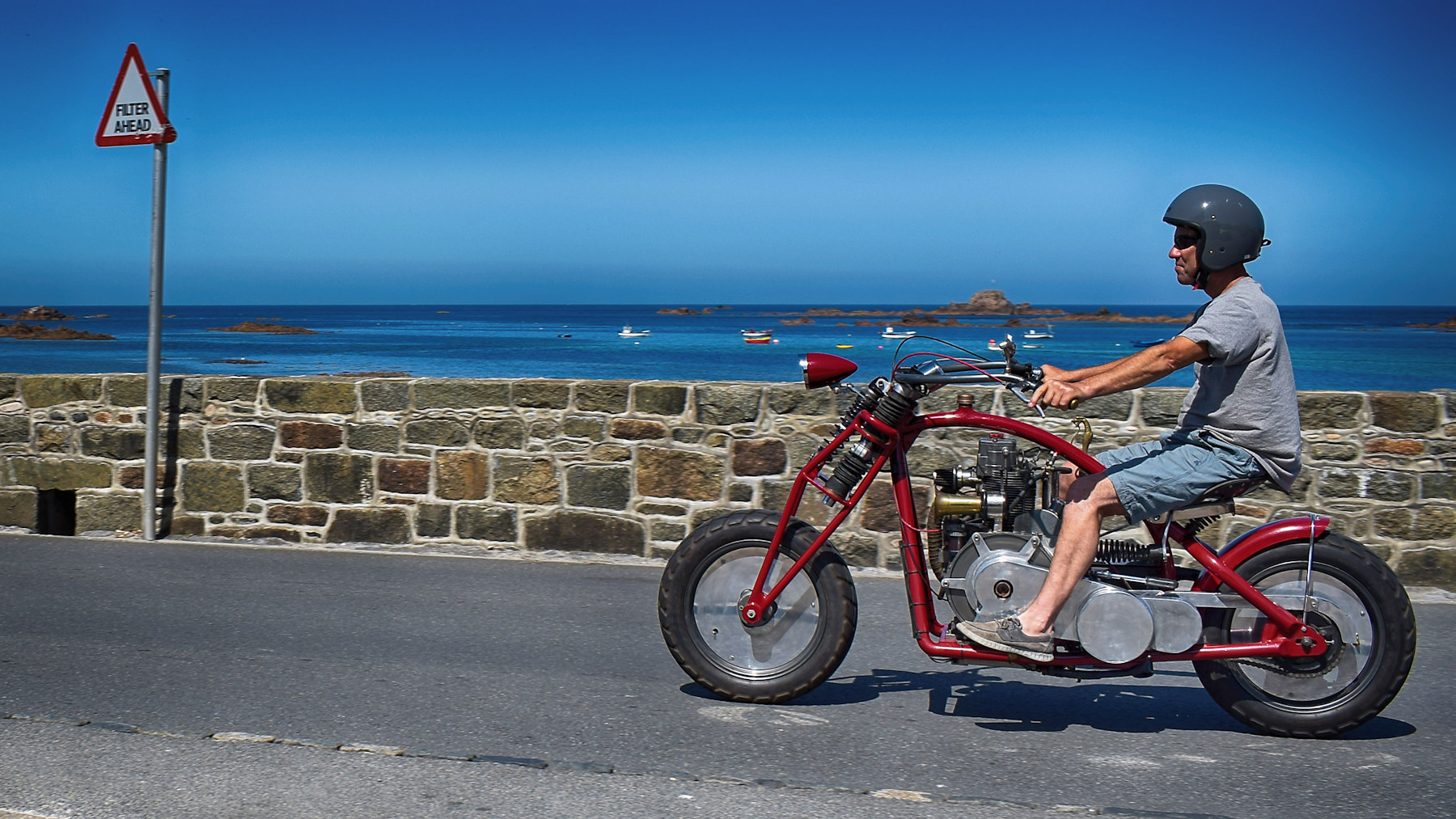 Un'atmosfera un po' californiana, dicevo. Avrei dovuto fare un filmato, quand’è passata questa moto fai-da-te, tanto per capire che motore usa.