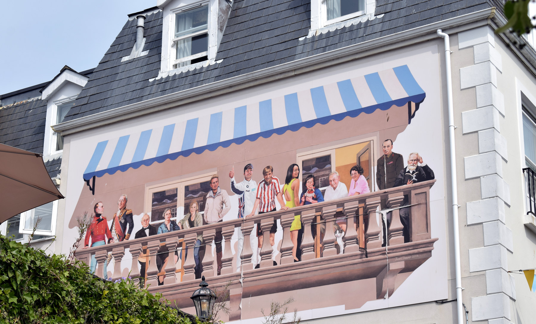 Un murale che raffigura personaggi famosi legati a Guernsey. Ho riconosciuto solo Victor Marie Hugo, che ha vissuto a lungo a Guernsey, e - a malapena - l'ex calciatore Matt Le Tissier, che su quest'isola e' nato.