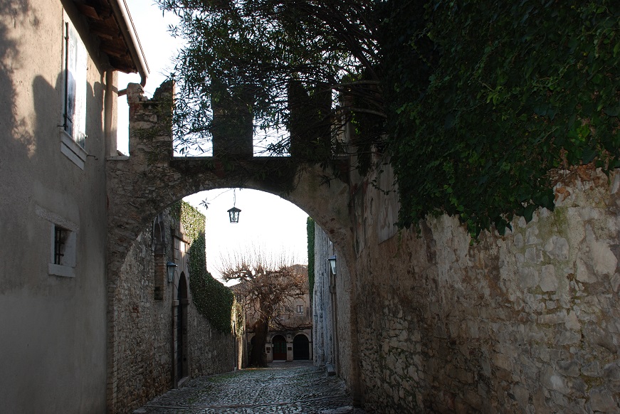 - chi giunge dall'entroterra, dopo il maestoso viale di cipressi, oltrepassa questo arco con merlature coreografiche (di dubbia antichità...).