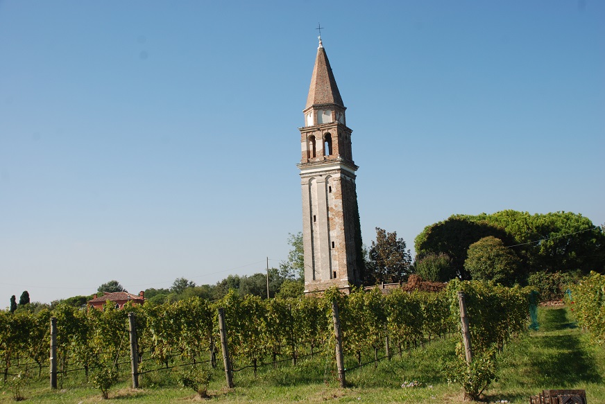 Oltrepassato il ponte longo (che collega le due isole), ci addentriamo nella "vigna Murata" di Mazzorbo, con il solitario campanile...pendente.