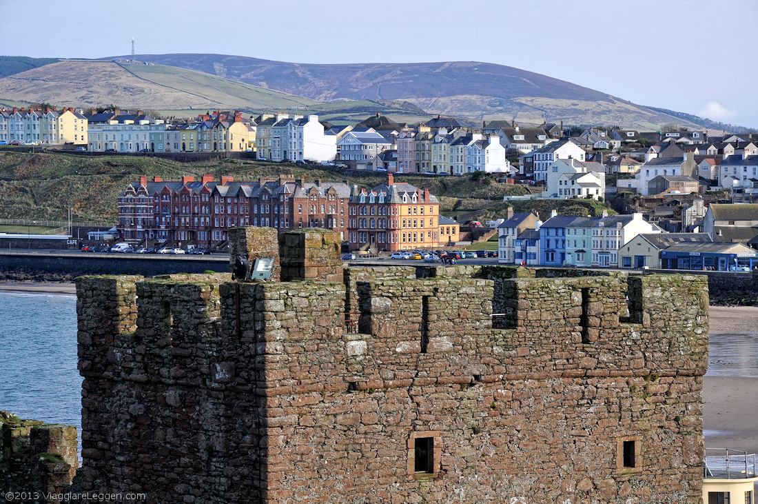 La città di Peel fa da sfondo alla torre del castello.