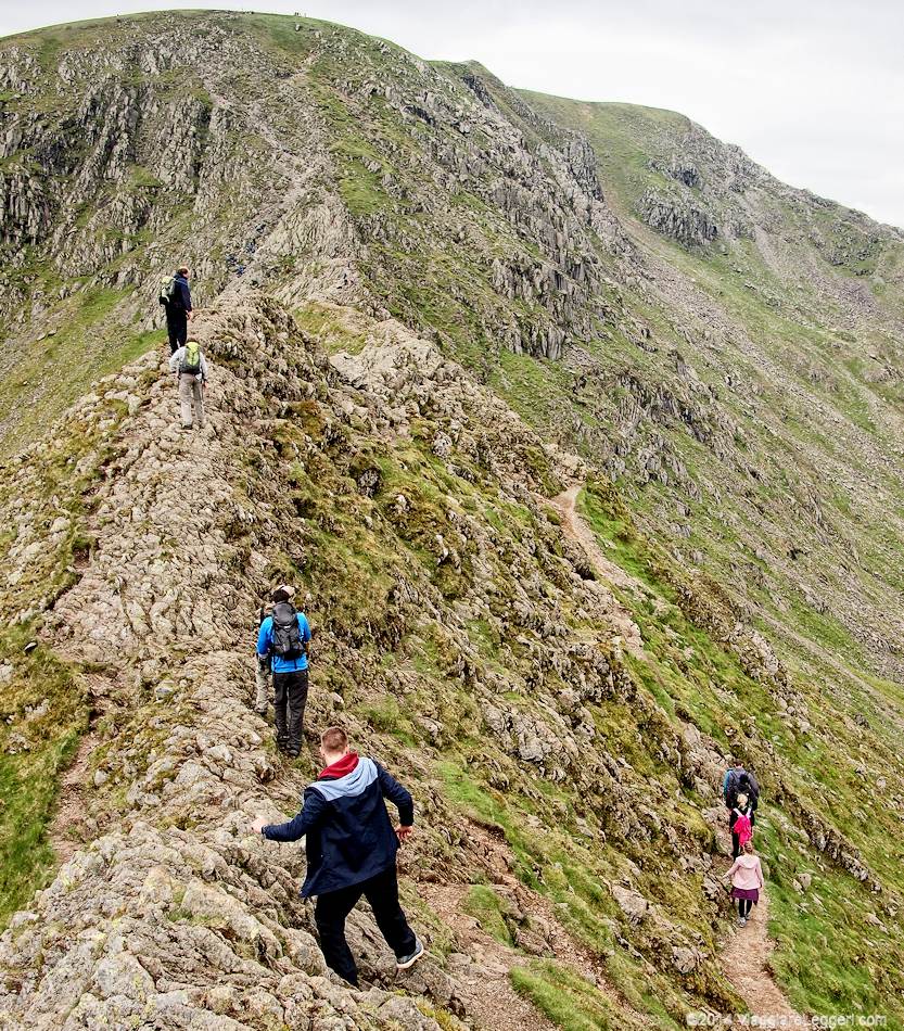 Ci sono sempre almeno due "vie" per percorrere Striding Edge: una, sulla cresta, permette il passaggio di una sola persona per volta, e a volte si restringe ulteriormente, o presenta spazi in cui e' necessario saltare. Vento, pioggia e neve possono rendere pericolosa questa traversata. Ma c'e' un secondo sentiero, meno aspro e meno esposto agli elementi, che corre a destra della cresta.