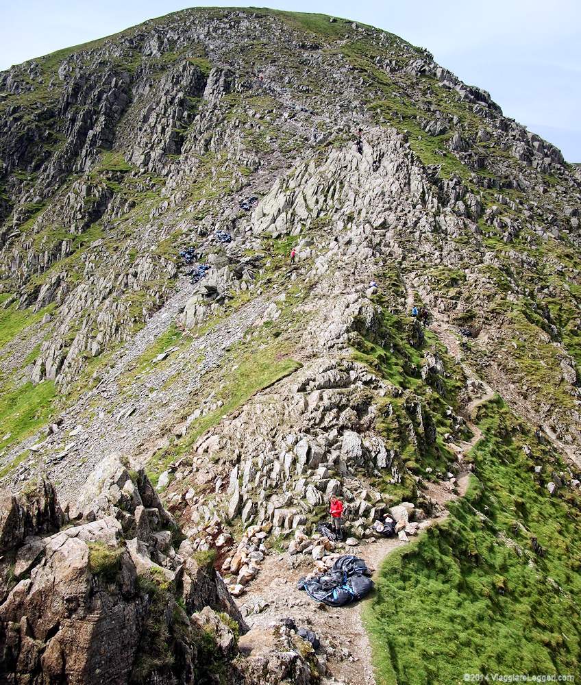 Davanti a noi le ultime scoscese rocce che ci porteranno - con un po' di arrampicata - a Helvellyn. Sotto, i ranger del parco (o sono dei volontari?) che fanno manutenzione ai sentieri.