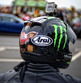Sui trentamila motociclisti radunatisi a Hastings, tanti erano quelli con moto + abbigliamento sportivo. E tra loro, tantissimi avevano la classica videocamera fissata al casco.