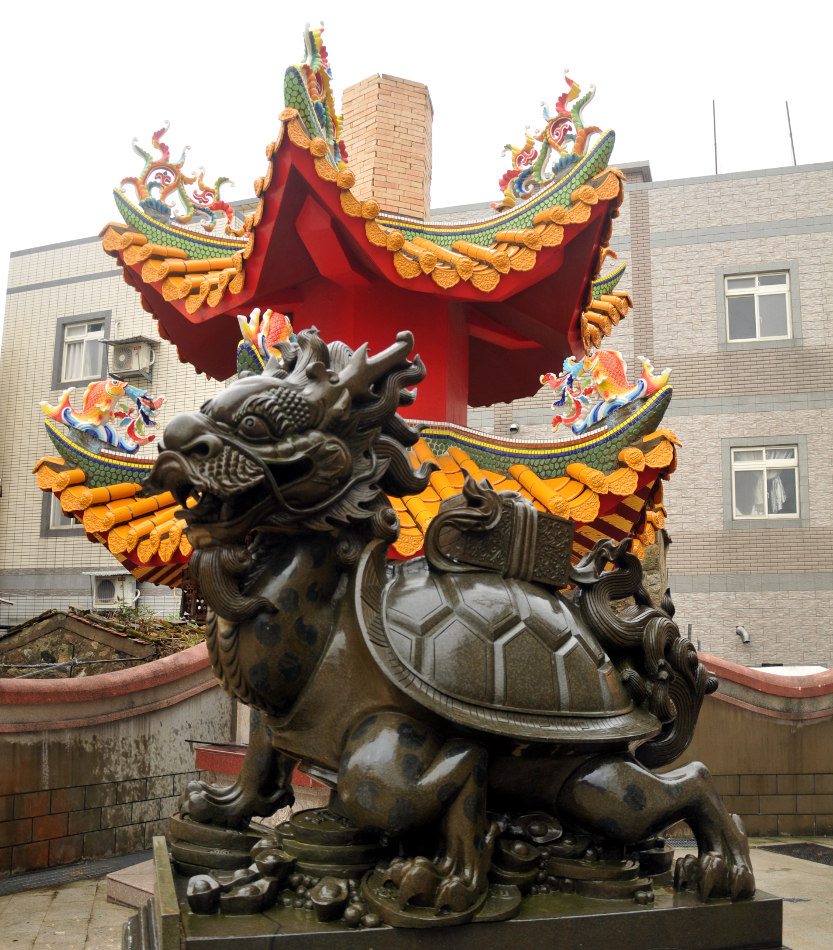 Di solito davanti ai templi a Taiwan ci sono dei leoni di pietra. In questo templio a Tangqi, invece, ci sono tartarughe.