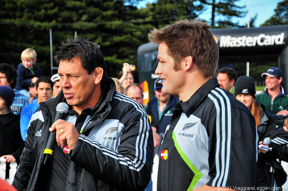 Shelford, il capitano piu' amato degli All Blacks, con McCaw, il capitano che ha riportato la nazionale neozelandese alla vittoria nel Campionato Mondiale dopo 24 anni di digiuno.