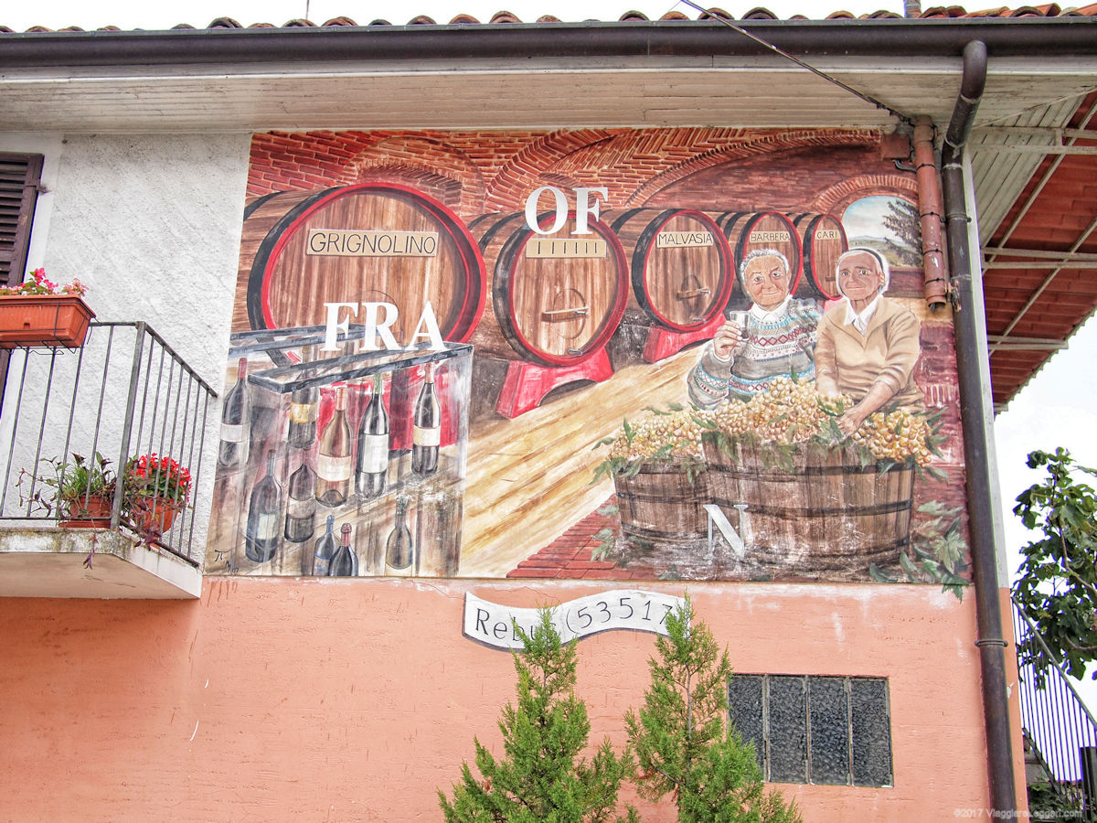 Un rebus che mostra alcuni prodotti tipici della zona: Grignolino, Malvasia, Barbera, Cari.