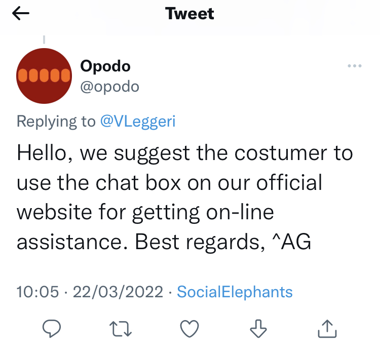 Come contattare Opodo, visto che non hanno un’e-mail pubblica? Ecco la risposta che abbiamo ricevuto tramite Twitter.