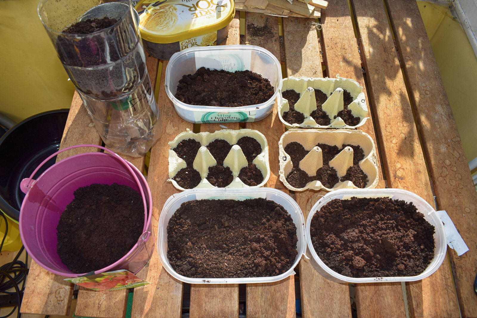 Vasetti fai-da-te per germinazione, ho piantato semi di origano, fagiolini e lavanda. Aggiungiamo i peperoncini dei giorni scorso, e verrà fuori un'insalata interessante.